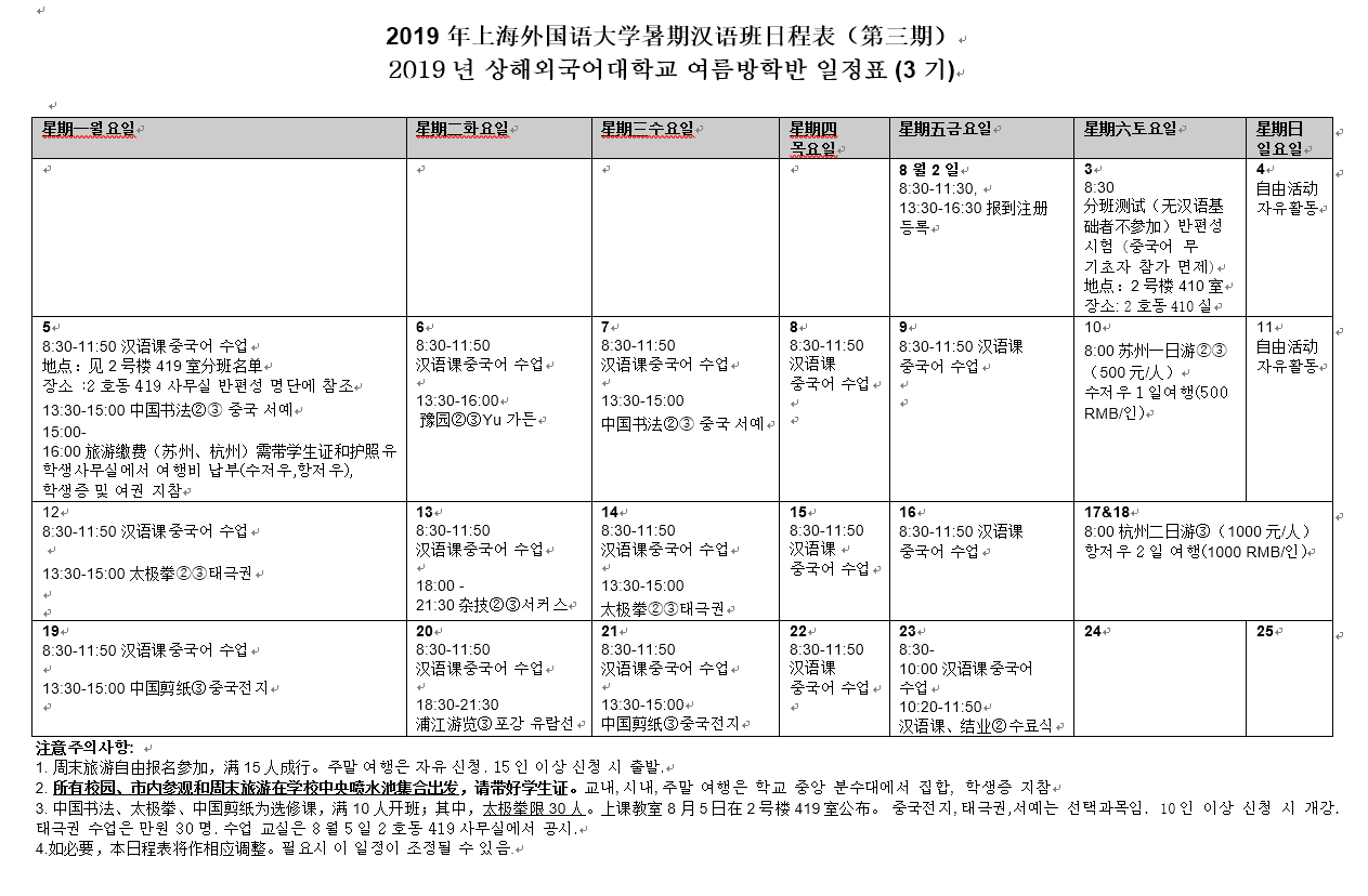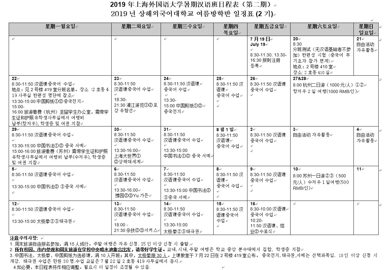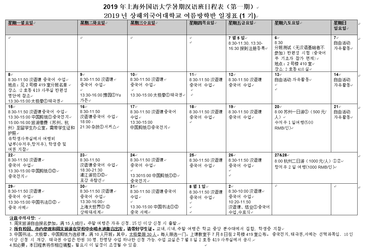 2019 여름 방학반 일정표